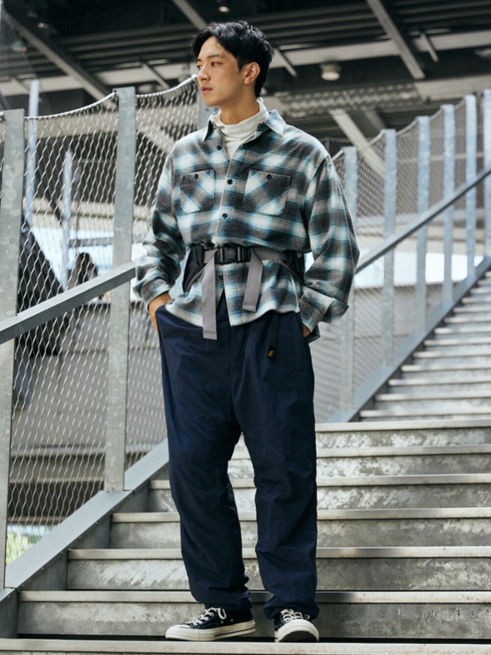 身長:176cm 体型:標準型 普段着用サイズ:L 年齢:30代 人気ブランドGRAMICCIの別注アイテムが今シーズンも登場! 今回の別注ではGRAMICCIパンツの特徴はそのままにDURABLE NYLON素材を採用しました。 マットな質感でなので、普段着としても浮かず、裾にはドローコードを仕込んでいるので自転車やトレッキングなどアクティブなシーンにも重宝します。 《シャツ》 着用サイズ:L 着用サイズ感:ゆったりとしたサイズ感です。 《パンツ》 着用サイズ:L 着用サイズ感:全体的にゆったりなシルエット。