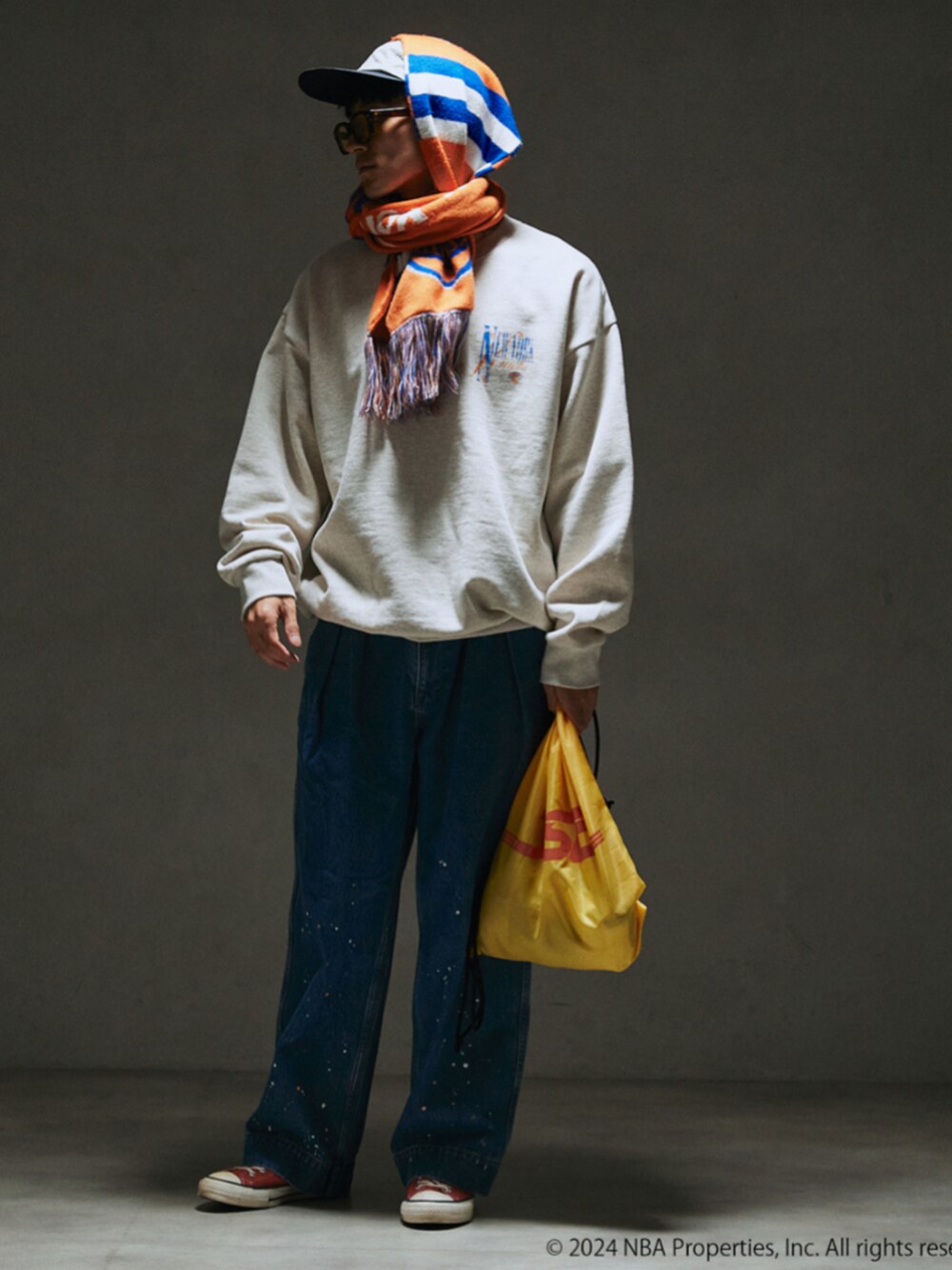 身長:176cm 体型:標準型 普段着用サイズ:L 年齢:30代 NBAのスウェットをデニムでとことんカジュアルに着こなしました。 生地は程良い肉感になる様に糸の太さを調整し、形は横幅にゆとりを持たせゆったりと着れるように1から作成した、14.8オンスのオリジナルボディも魅力の一つ。 《スウェット》 着用サイズ:L 着用サイズ感:ゆったりと着れるオーバーサイズ。 《デニムパンツ》 着用サイズ:L 着用サイズ感:腰周りにはゆとりがあって快適なサイズ感です。