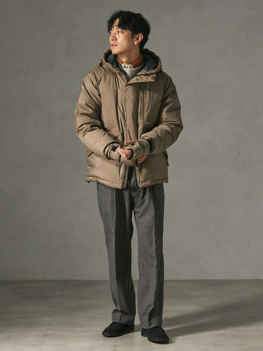 身長:176cm 体型:標準型 普段着用サイズ:L 年齢:30代 毎シーズンNANGAと共同開発を続け、培ってきた技術と経験を結集したAURORA -TEX(R) ダウンジャケット。 今シーズンの最大の特徴は、カラビナ付きHANDWARMERの装備です。 きれいめ~カジュアルまで、どんなスタイルにも合うので通勤アウターやオフの日のアウターとして一つで完結する優秀アイテムです。 《ダウンジャケット》 着用サイズ:L 着用サイズ感:体的にややゆったりとしたサイズ感のダウンジャケットです。 《スラックス》 着用サイズ:L 着用サイズ感:すっきりとしたベーシックなシルエット