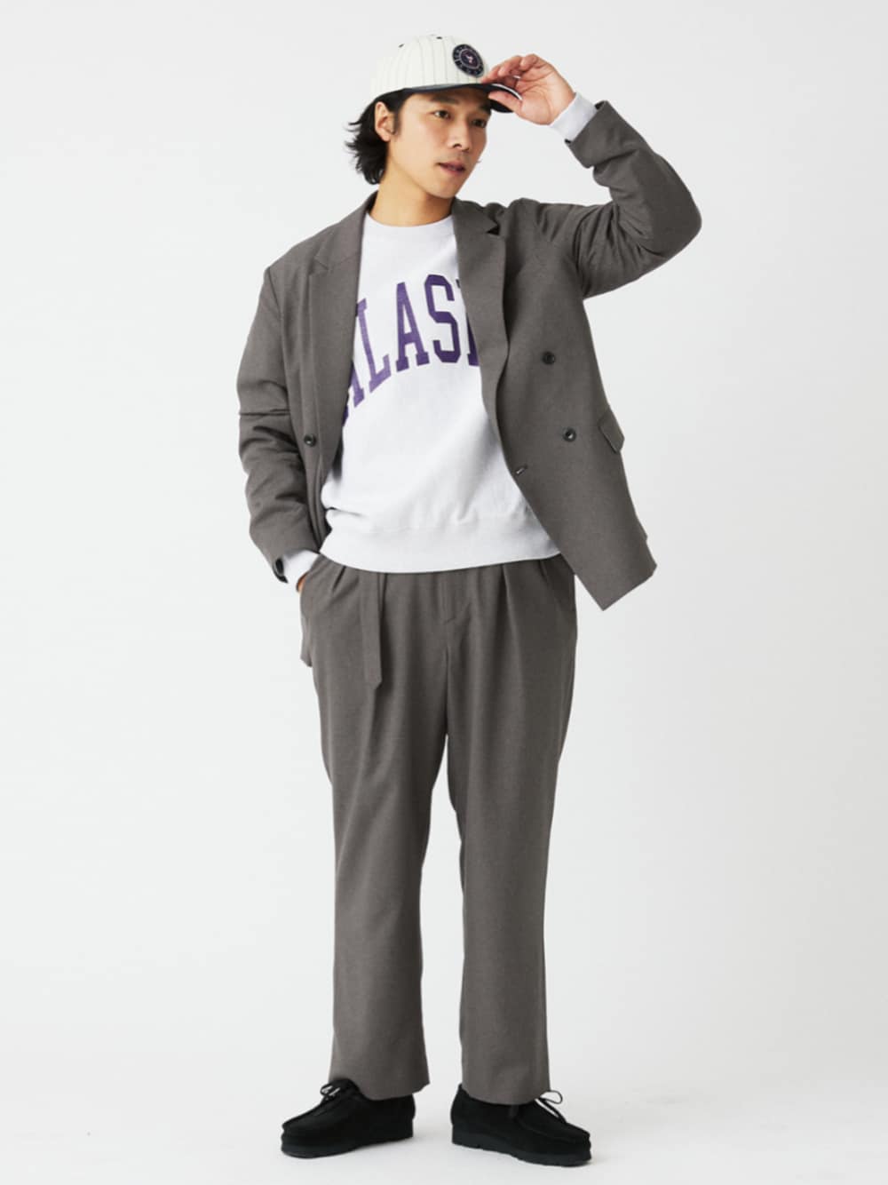 身長:181cm 体型:標準型 普段着用サイズ:L 年齢:20代 ジャケットとパンツのセットアップをスウェットでカジュアルダウンしてみました。 中にスウェットが着こめる余裕がありながらも、ジャストな着丈で、様々なボトムスと合わせやすいです。 《スウェット》 着用サイズ:L 着用サイズ感:ややゆったりとしたシルエットです。 《ジャケット》 着用サイズ:L 着用サイズ感:ややゆったりとしたサイズ感です。 《パンツ》 着用サイズ:L 着用サイズ感:ややゆったりとしたサイズ感です。