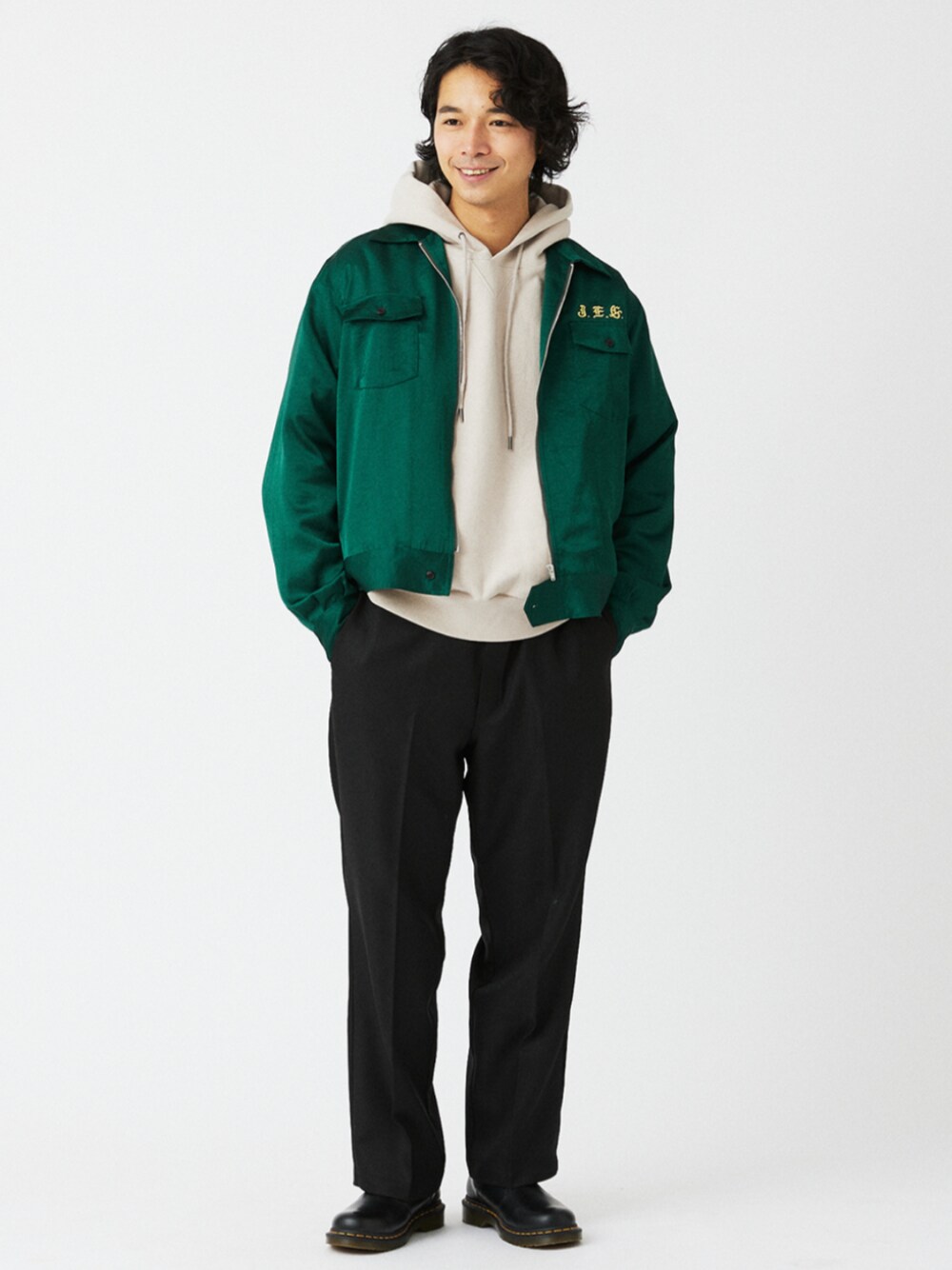 身長:181cm 体型:標準型 普段着用サイズ:L 年齢:20代 各地域での記念品やお土産品として起源のある、スーベニアジャケット。 オーバーサイズ、ボトムとのバランスが取りやすいです。、中にパーカーを着れるくらいの余裕はあります。 《ジャケット》 着用サイズ:L 着用サイズ感:ゆったり着れますが、着丈はコンパクト。 《パーカー》 着用サイズ:L 着用サイズ感:程よくゆったりとしたサイズ感です。