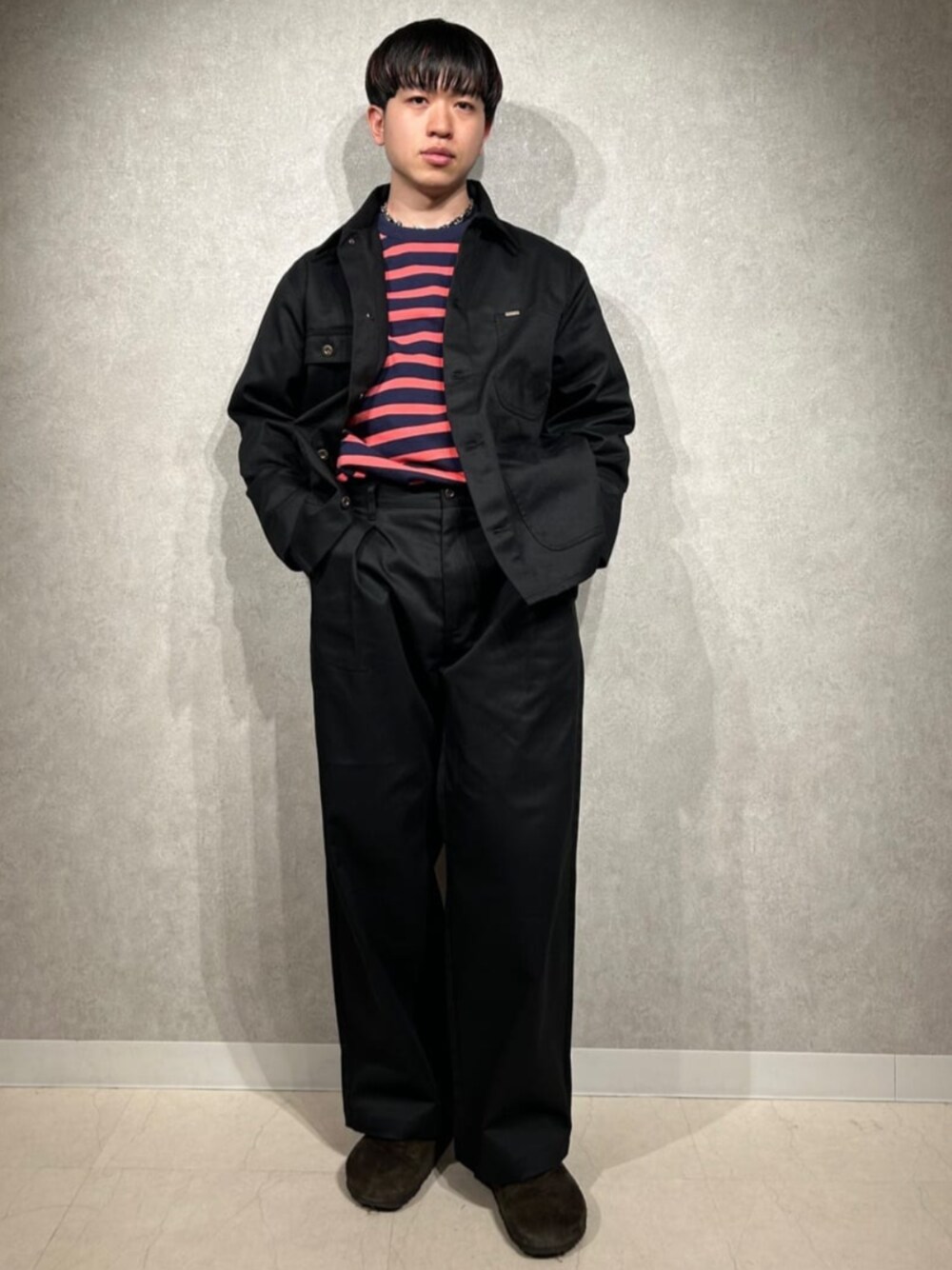 年代:20代 体型:標準 肩幅:普通 【UNIVERSAL OVERALLヘリテージライン 別注カバーオール】 ヘリテージラインオリジナルのTC素材を使用していて生地にハリがあり丈夫でガシガシ着て頂けます!春コーデの羽織にいかがでしょうか? 【UNIVERSAL OVERALLヘリテージライン別注ワイドトラウザー】 ジャケットと同素材セットアップ着用◉ 深めのタックが入っており立体感が生まれシルエットが凄く綺麗です! 【HARDIN KNITWEAR 別注 ヘビーオンスボーダーロングスリーブTシャツ】 ネイビー×ピンクの配色珍しいボーダーで春コーデにオススメの一着です!