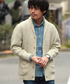 ケーブル編みが温もり感溢れるショールカラーカーディガンはシャンブレーシャツと相性のいいアイテムです。 デニムと合わせてカジュアルに。