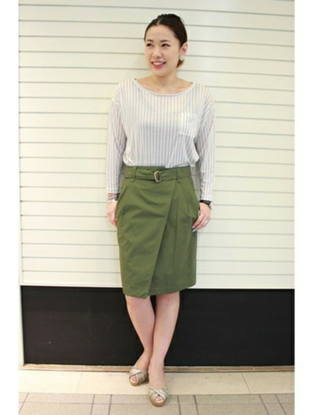 トレンドのラップスカートとストライプで大人なコーディネイトにしました!