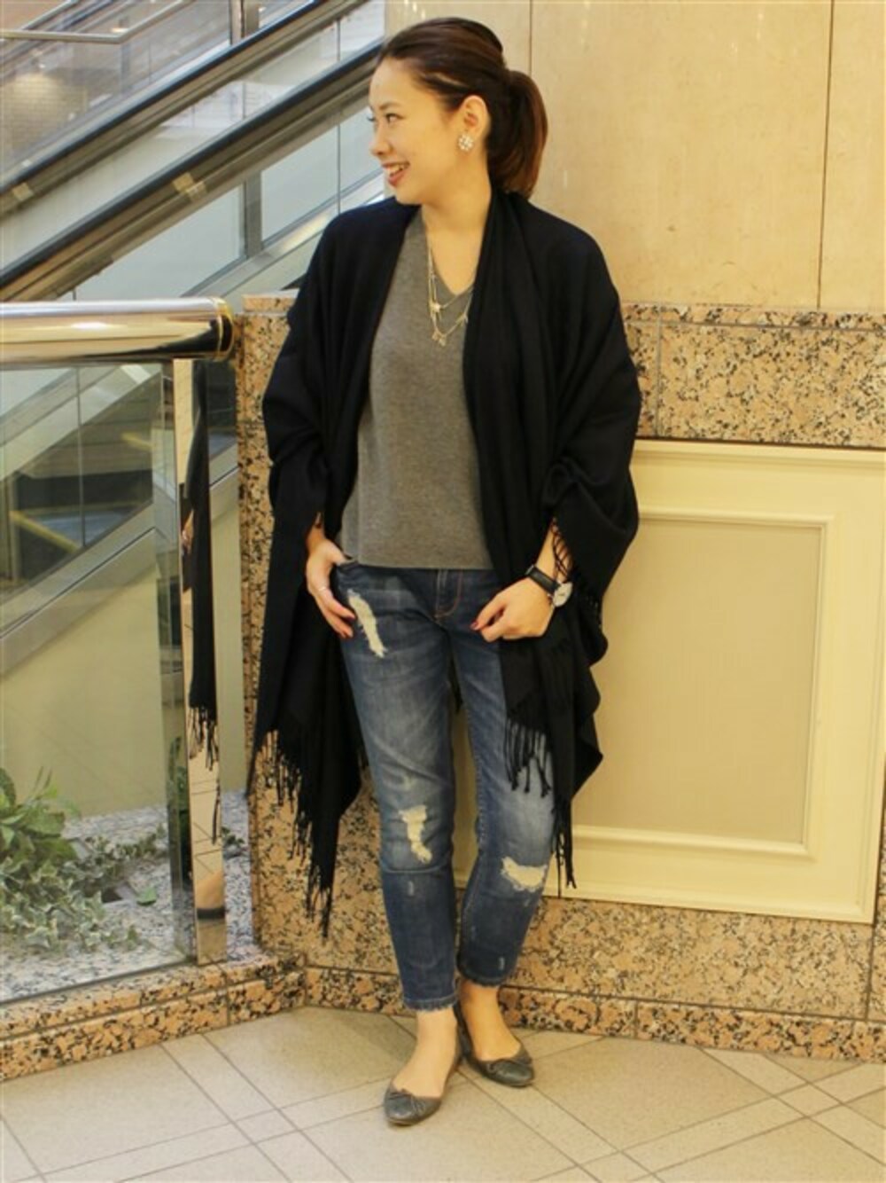 ivory court ランドマークプラザ店スタッフのストール/ショール「ポンチョ◆」を使ったコーディネート
