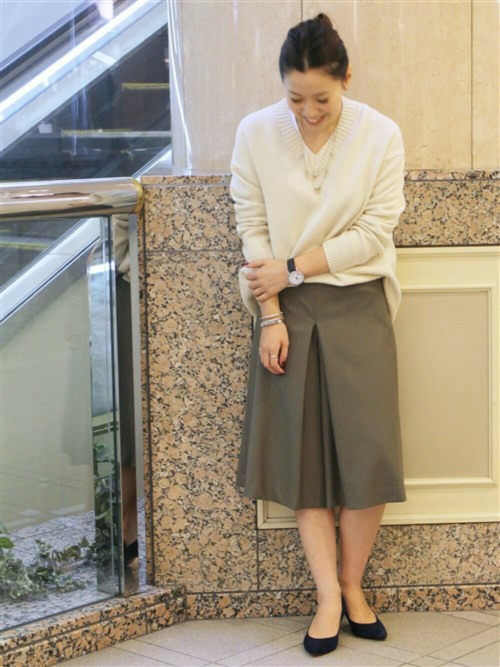 ivory court ランドマークプラザ店スタッフのニット/セーター「ウールカシミヤVネックプルオーバー」を使ったコーディネート