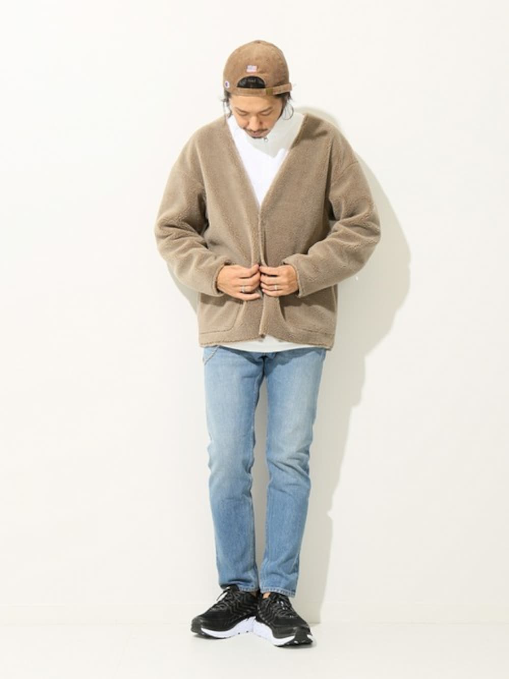 NAKAのムートンコート「フェイクムートンカーディガン#」を使ったコーディネート