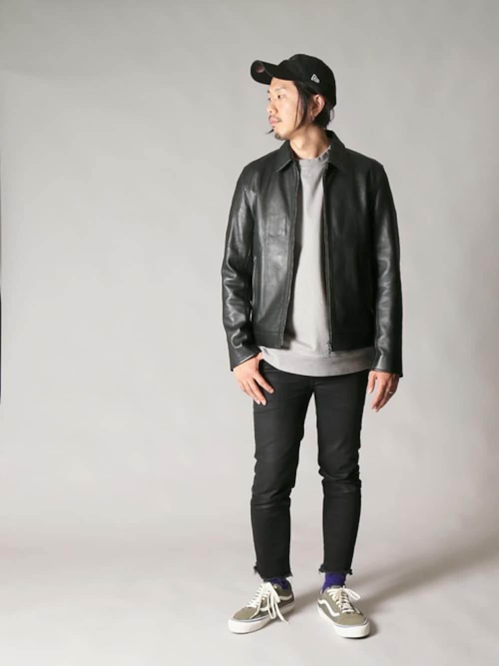 NAKAのライダースジャケット「【Begin掲載】ラムレザー ライダースジャケット#」を使ったコーディネート