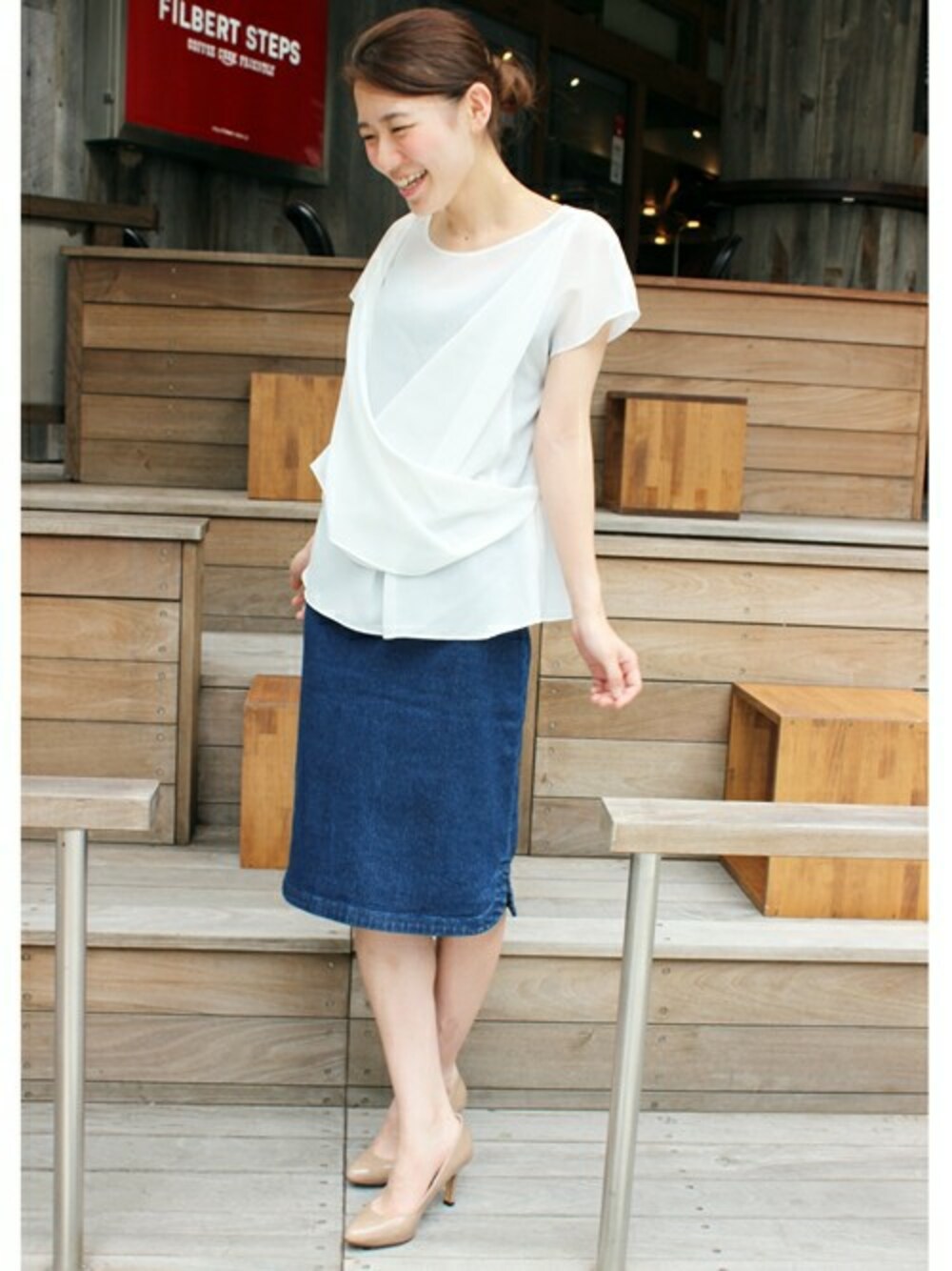 1枚で表情のあるブラウスがシンプルコーデに映えます。 暑い日にはホワイトトップスで爽やかに。