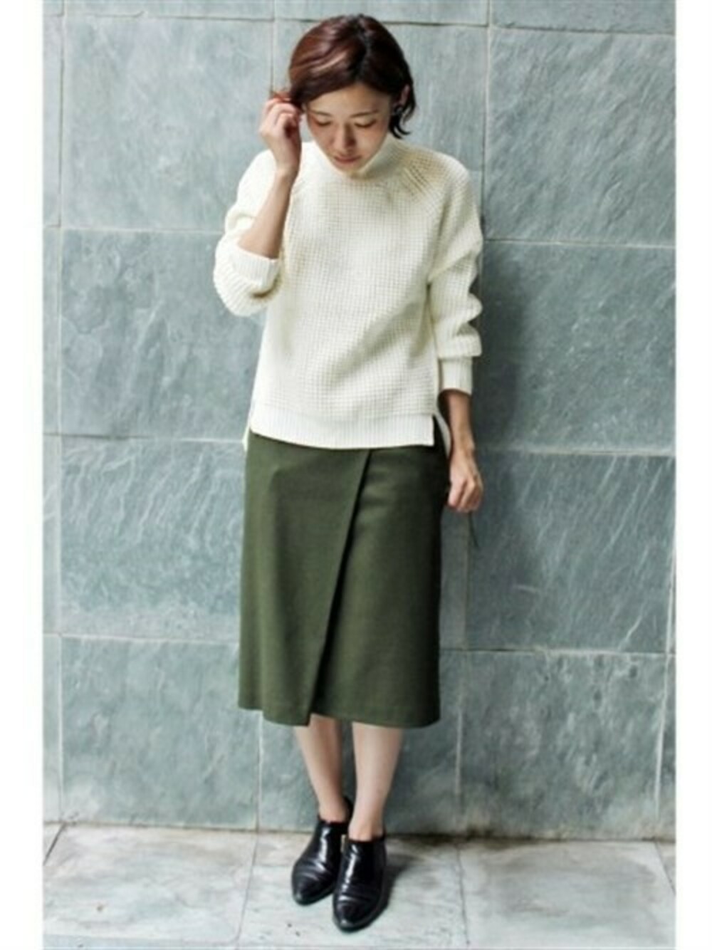 トレンドのラップスカートで!ざっくりニットとの相性も◎