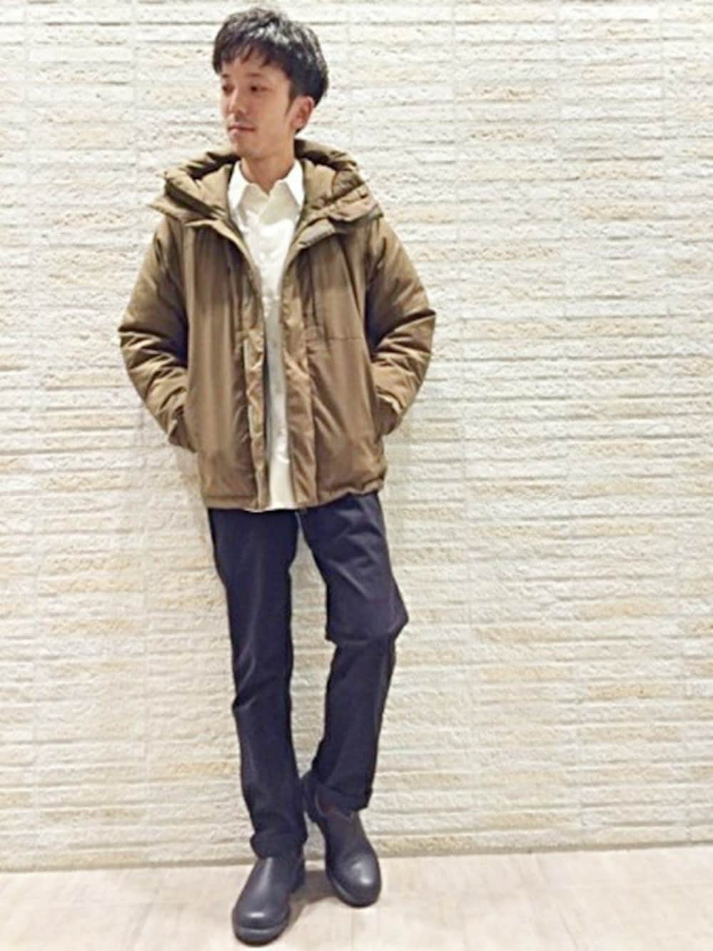 シンプルなデザインが特徴的なダウンマウンテンパーカー。 クライミングパンツとサイドゴアブーツでアウトドア要素をプラス致しました。