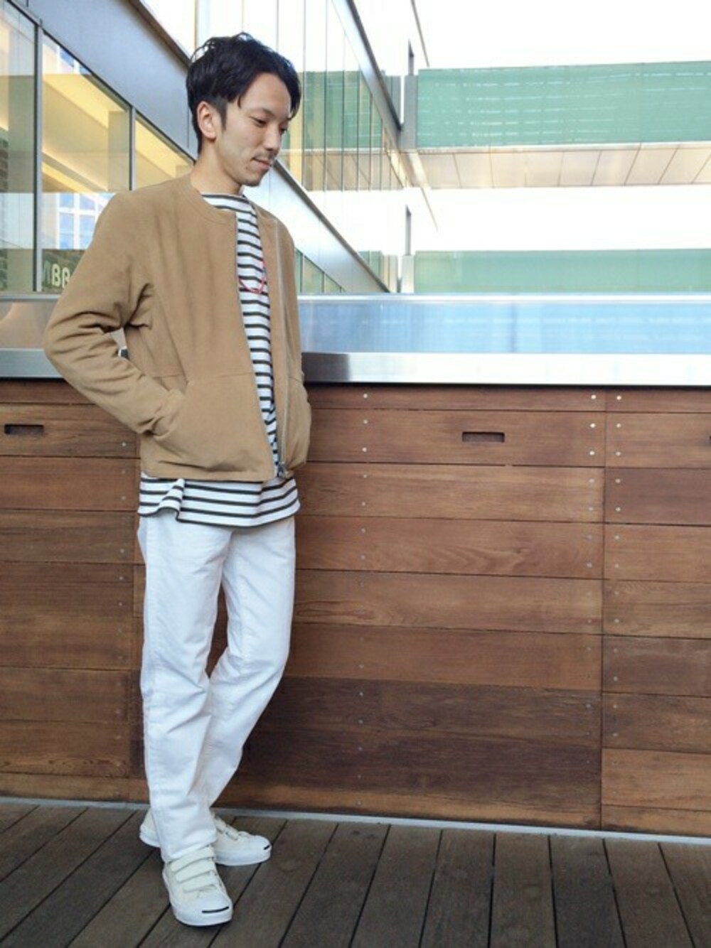 ホワイト系のその他パンツを着用したメンズの冬コーディネートの1枚目の写真