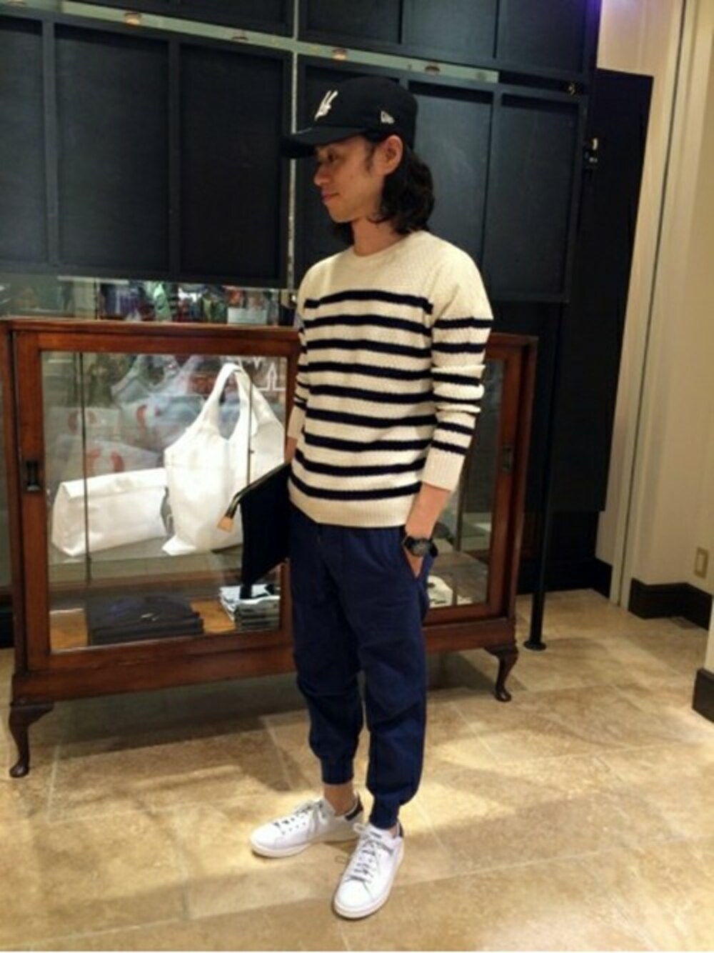 初秋のアイボリーコート流シティースタイルです。 今年トレンドのイージーパンツと合わせてラフ&スポーティーに、、、 足元はお約束の スタンスミスですっきりと爽やかに!!