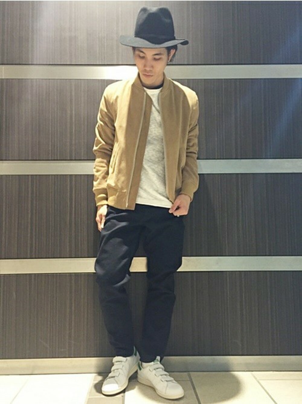 AWSOMEのレザーブルゾンをメインに無骨にキレイにまとめました。 アウターの風合いを生かしながらコーディネートしたところがポイントです。
