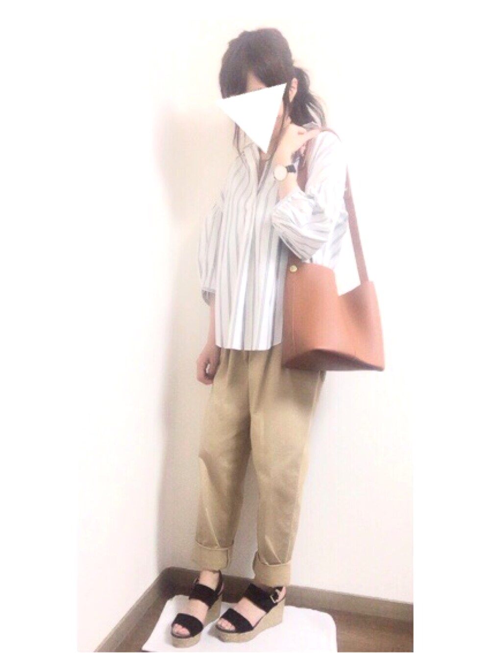 i-waのシャツ/ブラウス「ギャザースリーブストライプビッグシャツ」を使ったコーディネート