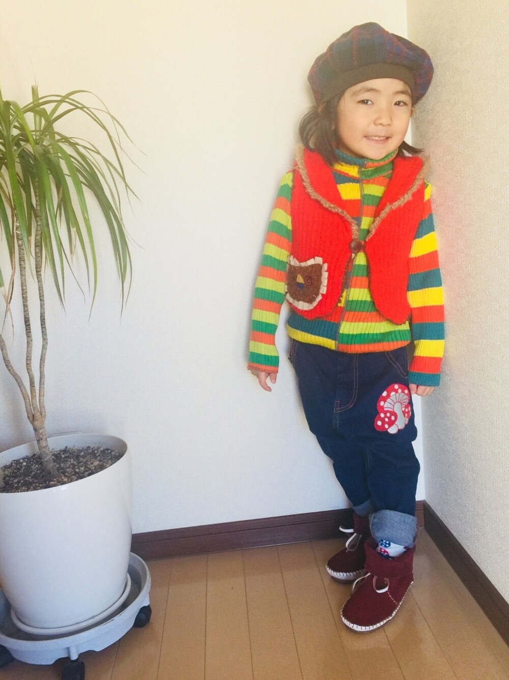 ヒロのデニムパンツ「キノコ付きロングパンツ」を使ったコーディネート