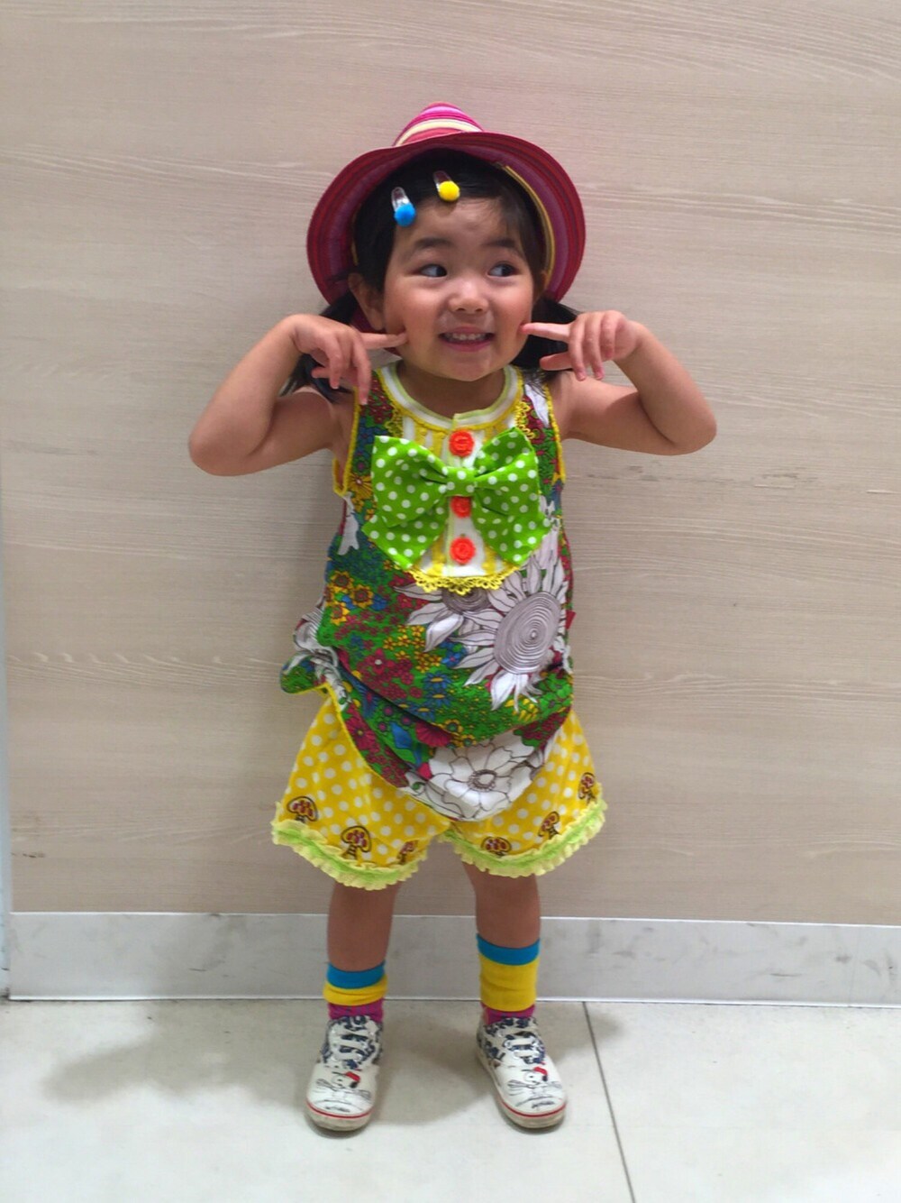 先日のフォトコン用のコーデのひとつ。 娘さん。 気分が乗らず… 逃げ回り… 作り笑顔が気持ち悪く… リボンも曲がる… 😱😱😱😱😱