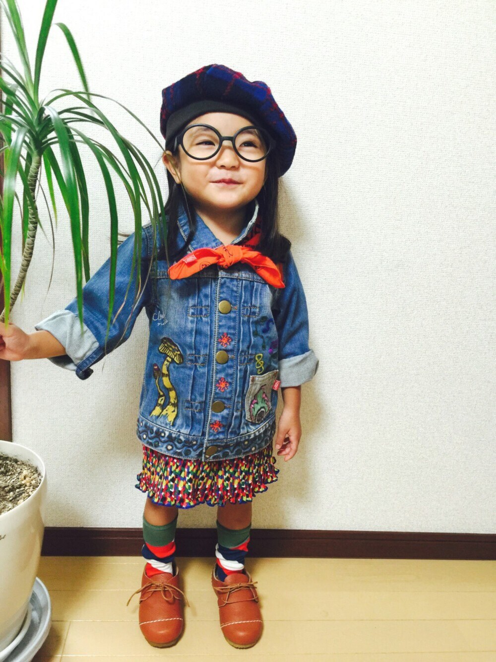 BOOの一目惚れGジャンデビュー✨ こうやって着せるんだったら、 もう1サイズ下にすればよかった…… でも…長〜〜〜く着せたい!と欲張ってしまった… そんな反省コーデ。 のっけからグダグダとすいません💦 相変わらずスカートが似合わない娘です…。 いつスカートを楽しめるようになるのだろ。 それにはまず、その幼児体型、卒業してからだな…😑 あっ。左襟が立ってる😱 いろいろ反省…