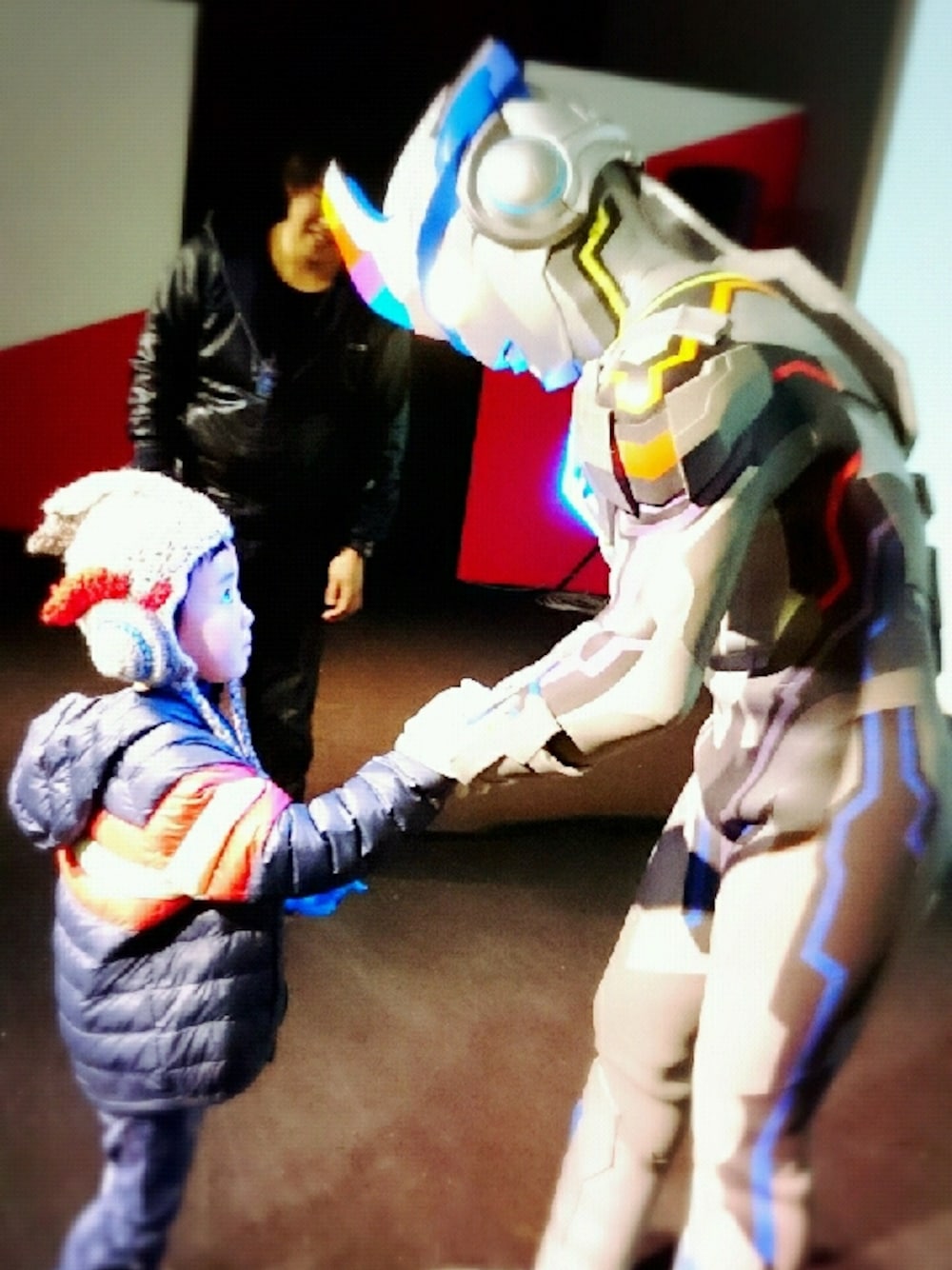 ウルトラマンのイベントスタイルです! 手編みのニット帽で握手してもらいました☆