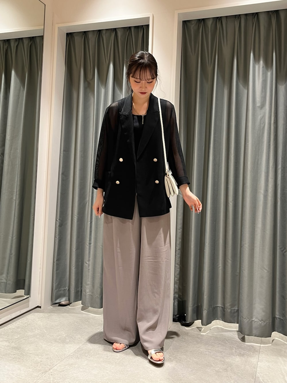 こちらのジャケットは夏快適アイテム☆ メッシュ素材で通気性が良くて涼しいです🫧𓂃𓈒𓏸 ボトムスは落ち感のあるシルエットでコーディネートも組みやすいです! 163cmでこの丈感だったので、ずるっと履くのが好きな方、高身長さんにはとてもオススメです❤️ ____________________________ Instagramも更新しているのでフォローして下さったら嬉しいです✨️ @doudou_sayaka