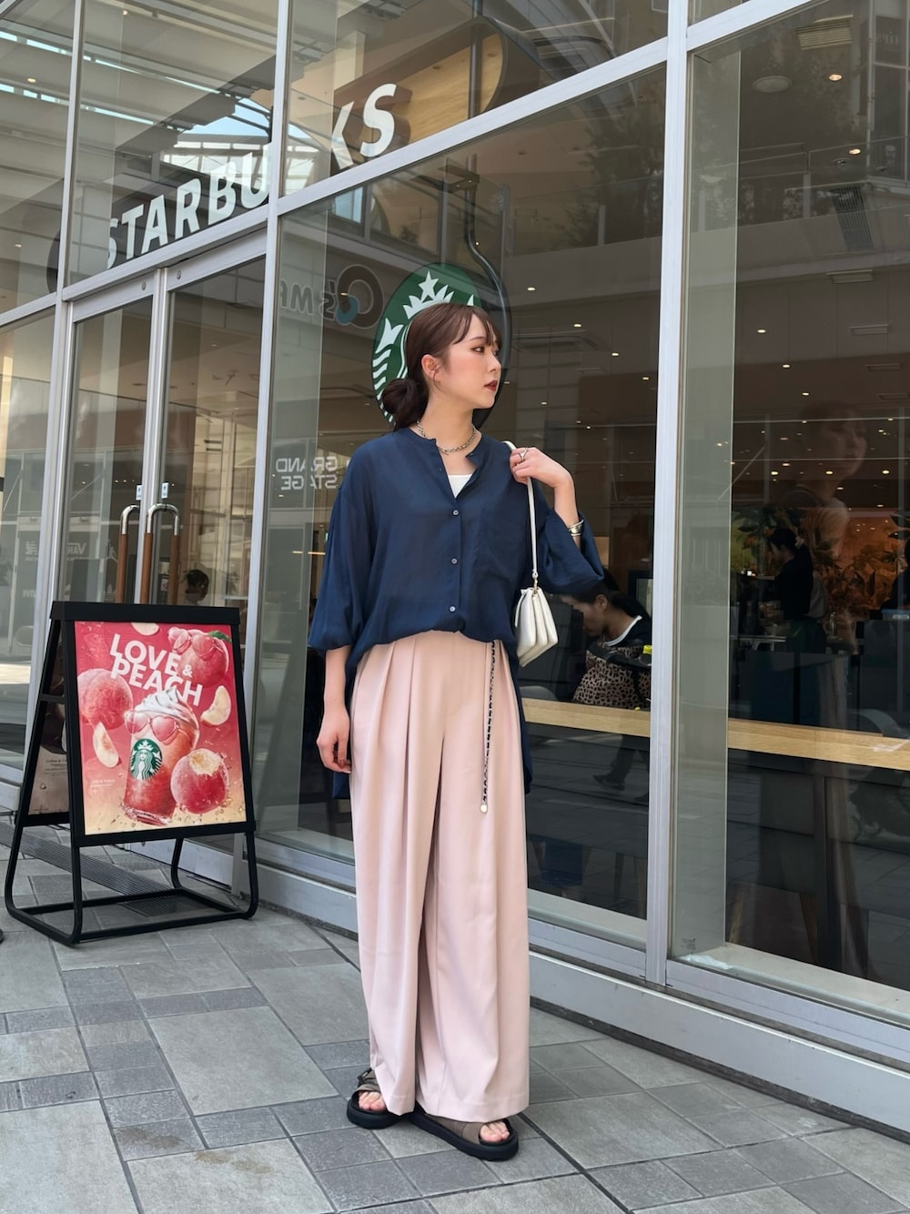 バックデザインまでもオシャレに 大人な印象で着ていただけるシャツ💖 ストンと落ちるワイドパンツと合わせてシンプルだけど大人かわいい✨️