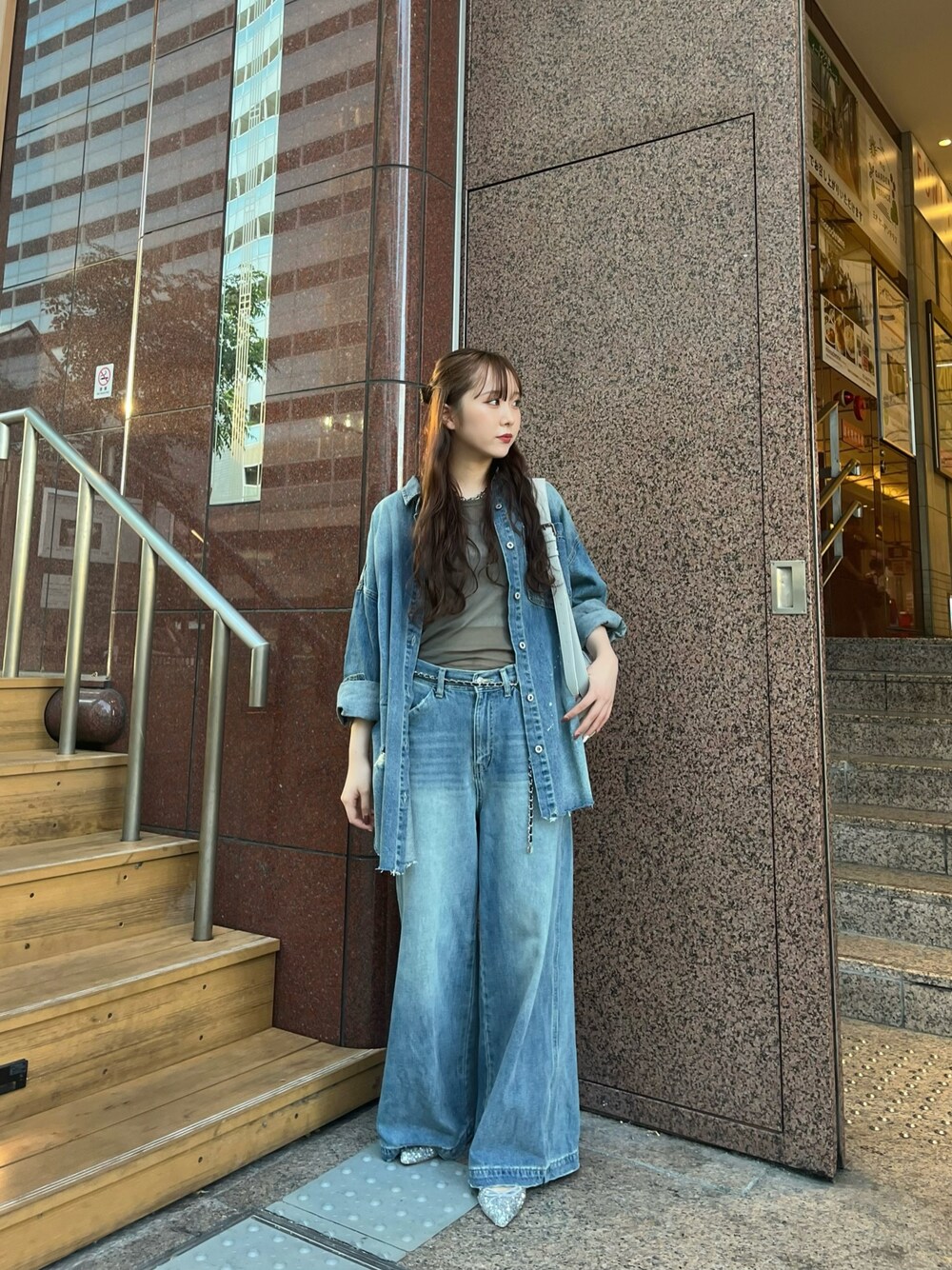 セットアップ風デニムコーデ♡ デニムシャツのペイントデザインがさりげなく可愛い…💭💗