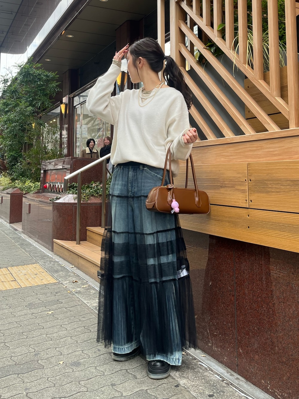 あったかウール素材のニット♡なんとご自宅でお手入れができるアイテムで、シンプルで着回しやすいのがポイント✩.*˚インナーはラメロンTEE合わせで華やかな印象に…⟡.·アクセサリーはゴールドで統一しました! 裏地が取り外し可能なスカートは、デニムとレイヤードするとこんな感じです♪カジュアルなアイテムに少し甘さをプラス✨️冬の少し甘めコーデにもオススメです♡