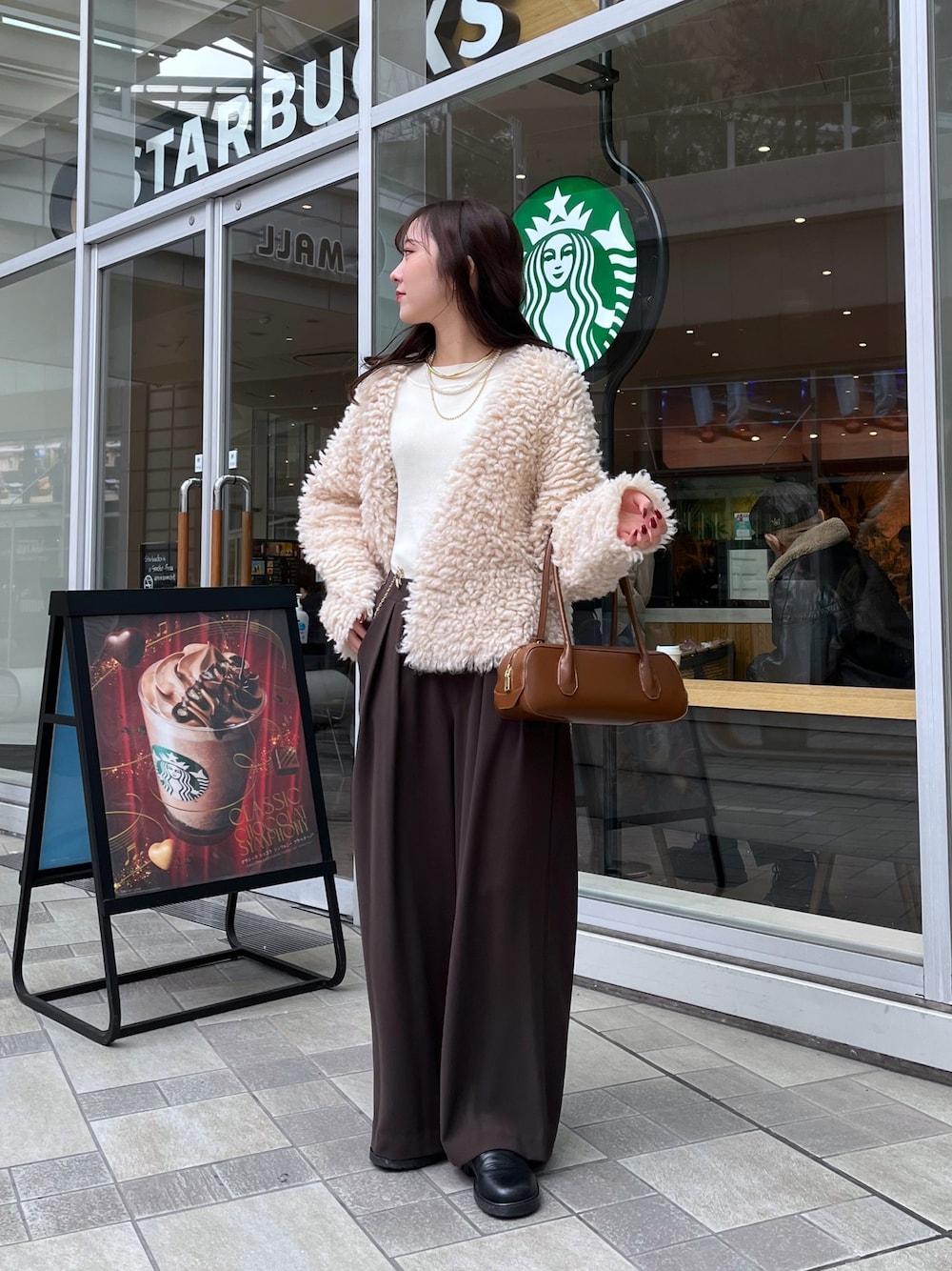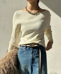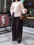 ボリューム感が可愛いカーディガン⟡.·ボタンレスタイプのスッキリした丈感で、重たくなりすぎずバランスよく着られます◎合わせたインナーは非ウール素材でチクチク感なく、首元がリブ仕様なので気分によってオフショル、ワンショルと着こなしを楽しんでいただけます♡ 合わせたパンツは体のラインを拾わず履ける、タックワイドパンツです✧*。私は163cmでTMサイズを着用しております。