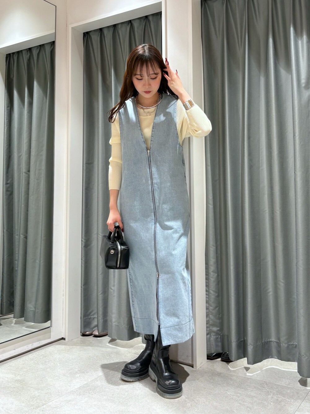 doudousayaka(DOUDOU天王寺MIO)のワンピース「フロントファスナーデニムジャンスカ」を使ったコーディネート