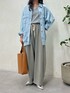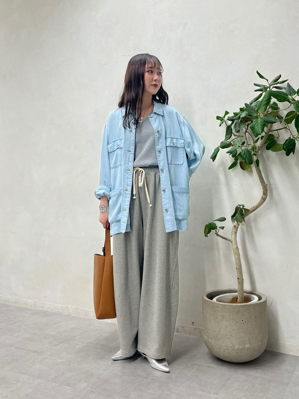 大きめなポケットがポイントのカバーオール🩵柔らかい生地感なので、カジュアルすぎず、大人っぽく着こなせます◎腰まわりまでカバーしてくれる丈感が嬉しいポイントです💡 履き心地抜群なスウェットパンツは、カーブシルエットが新鮮です!