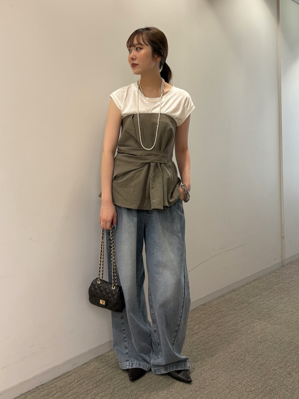 取り入れるだけでおしゃれ見えなビスチェコーデ♡胸元の滑り止めとバッグゴムで安心感があります✨