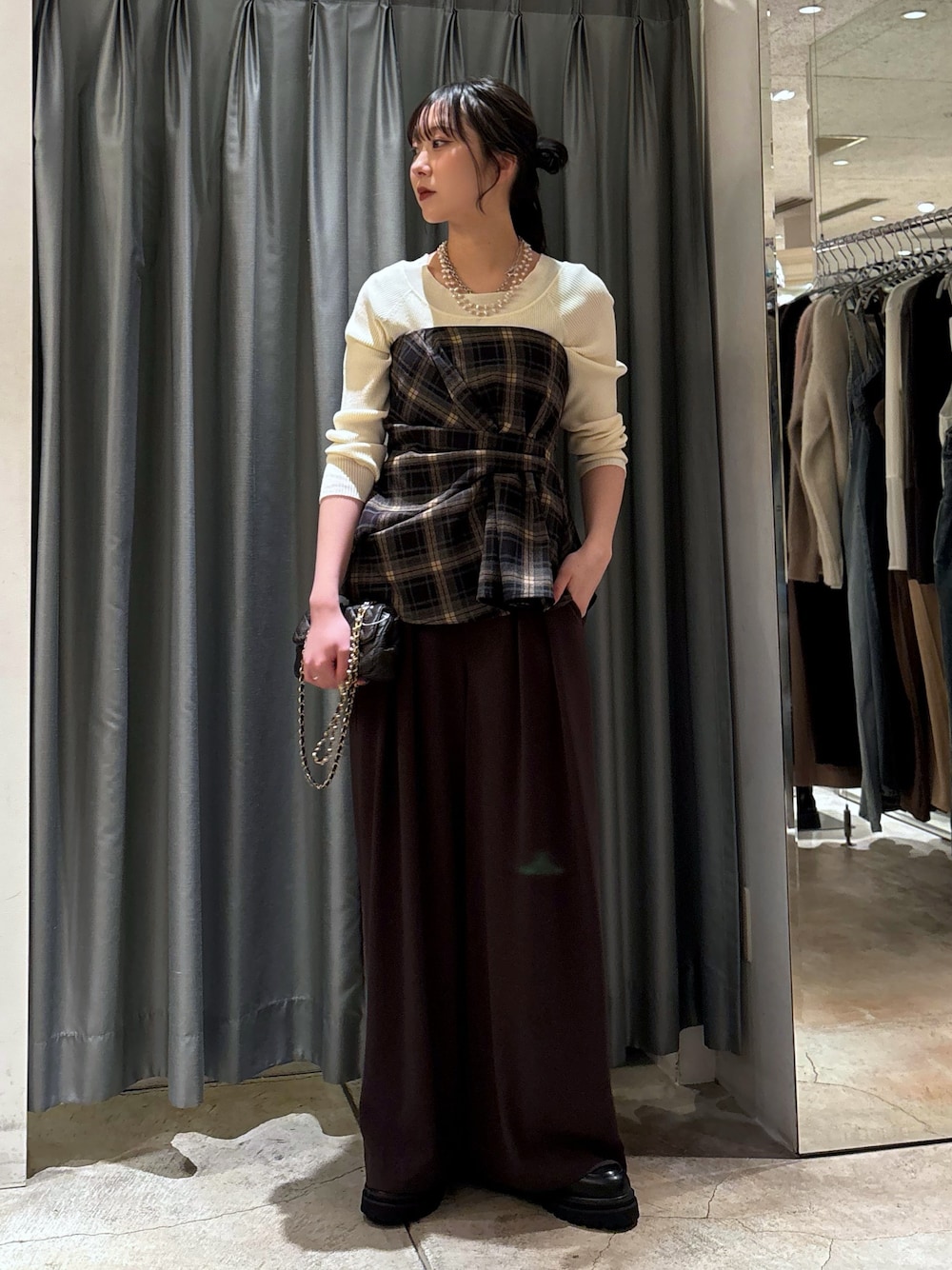 doudousayaka(DOUDOU天王寺MIO)のその他トップス「起毛チェックビスチェ」を使ったコーディネート