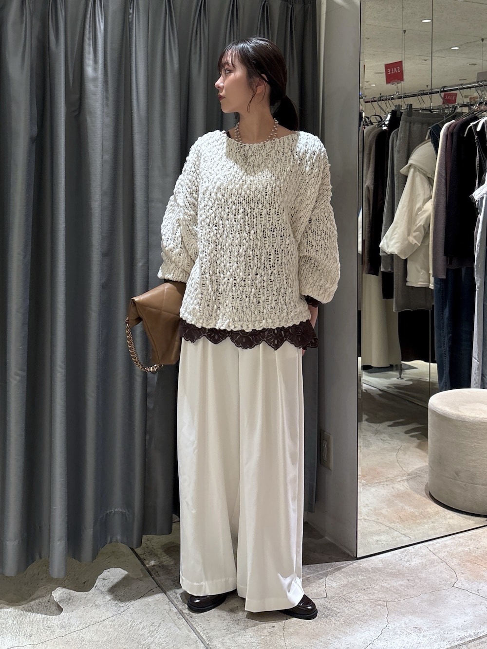 ざっくり編みが可愛い主役ニット🧶 パンツは163cmの私でTMサイズを着用しております。