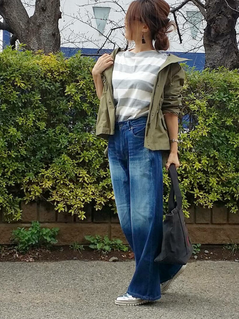 シンプルコーデ♪ 太ボーダーTにマウンテンパーカー。