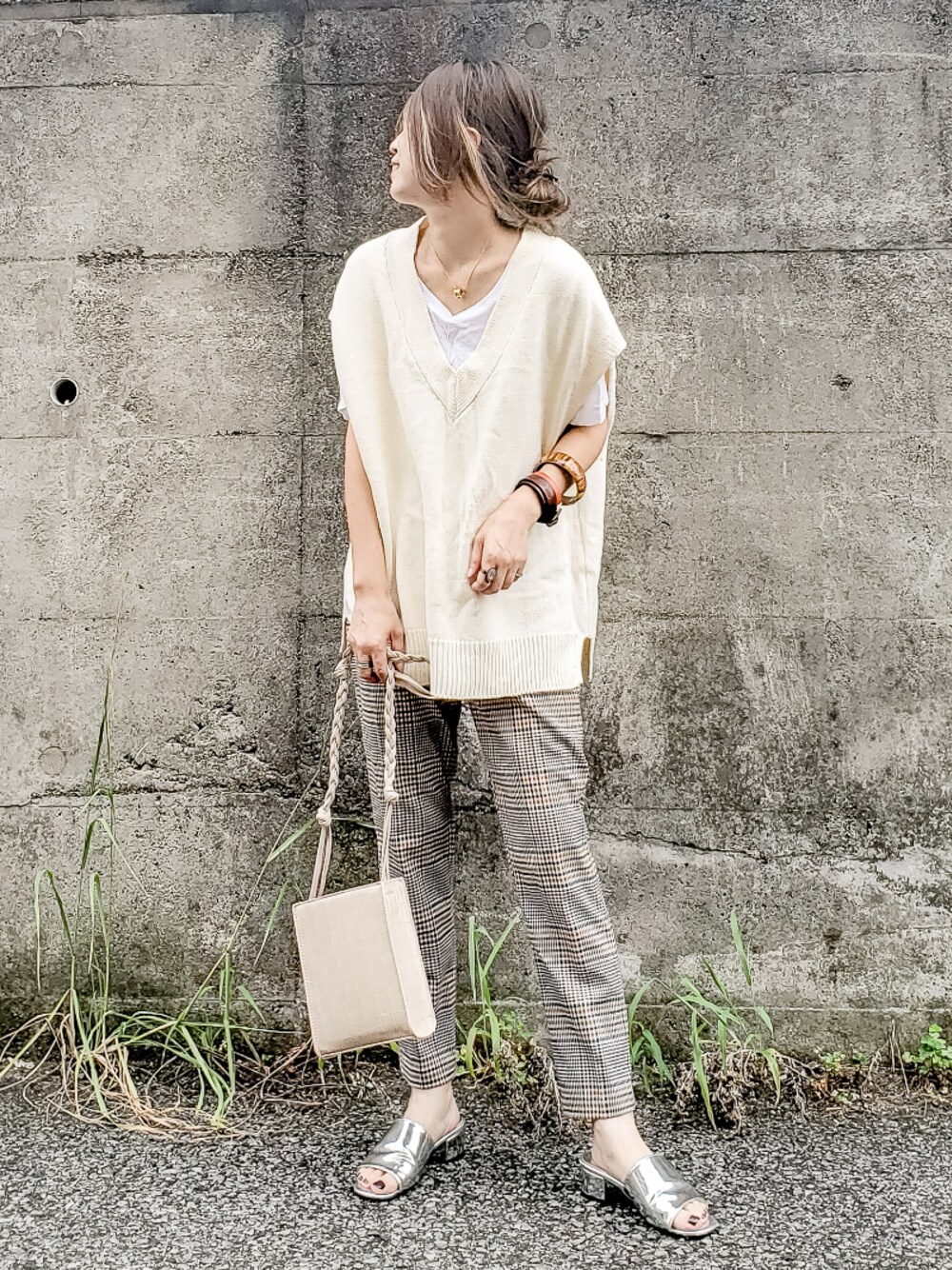 ベストにチェック柄パンツで秋っぽいコーデに☺️ Instagram⏩⏩and_rich_