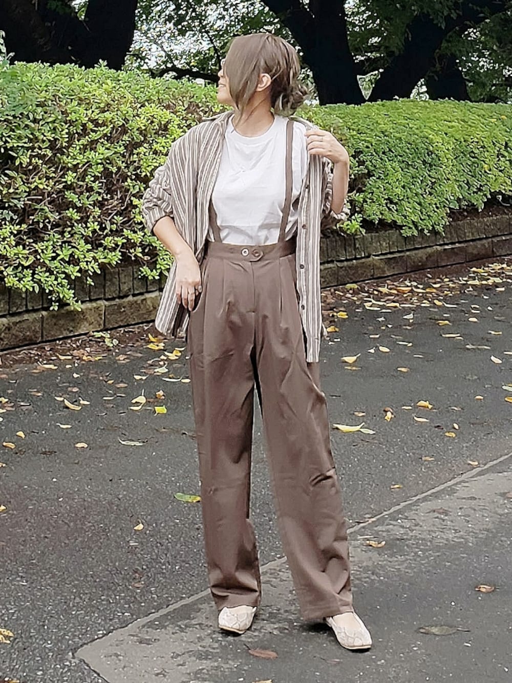 ブラウンで秋コーデ🍂 サスペンダー付きパンツにストライプシャツを 羽織ってます😉 【SUGAR BISKET】 〈サスペンダー付きセンタープレステーパードパンツ〉 サスペンダー付きパンツってカジュアル感が 強めのものが多いけど、これは大人っぽく履ける😊 メンズライクっぽくもいけるので私は着やすいかな🎵 ウエストがダブルボタンのデザインなので サスペンダー外して普通のタックパンツと してもかわいいなぁ☺️ Instagram⏩⏩and_rich_