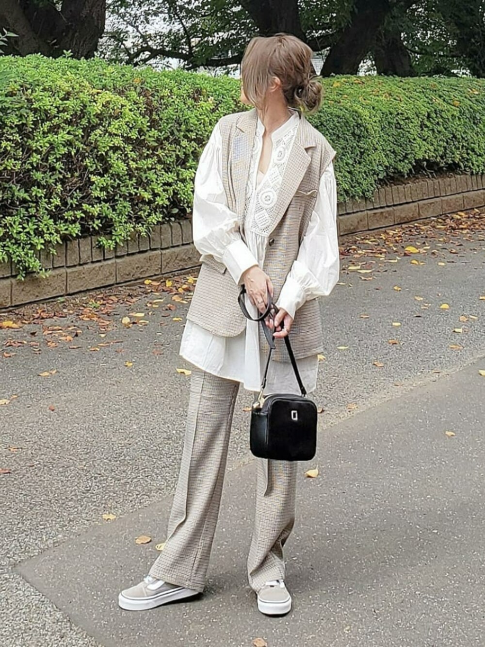 まだまだ着回したいジレのセットアップ🖤 細かいチェック柄がかわいい~😀 メンズライクなセットアップにきれいめな クロシェブラウス入れたらちょうどいい雰囲気に✨ チュニック丈だからジレとレイヤードになって こういうの好きかも❣️ Instagram⏩⏩and_rich_