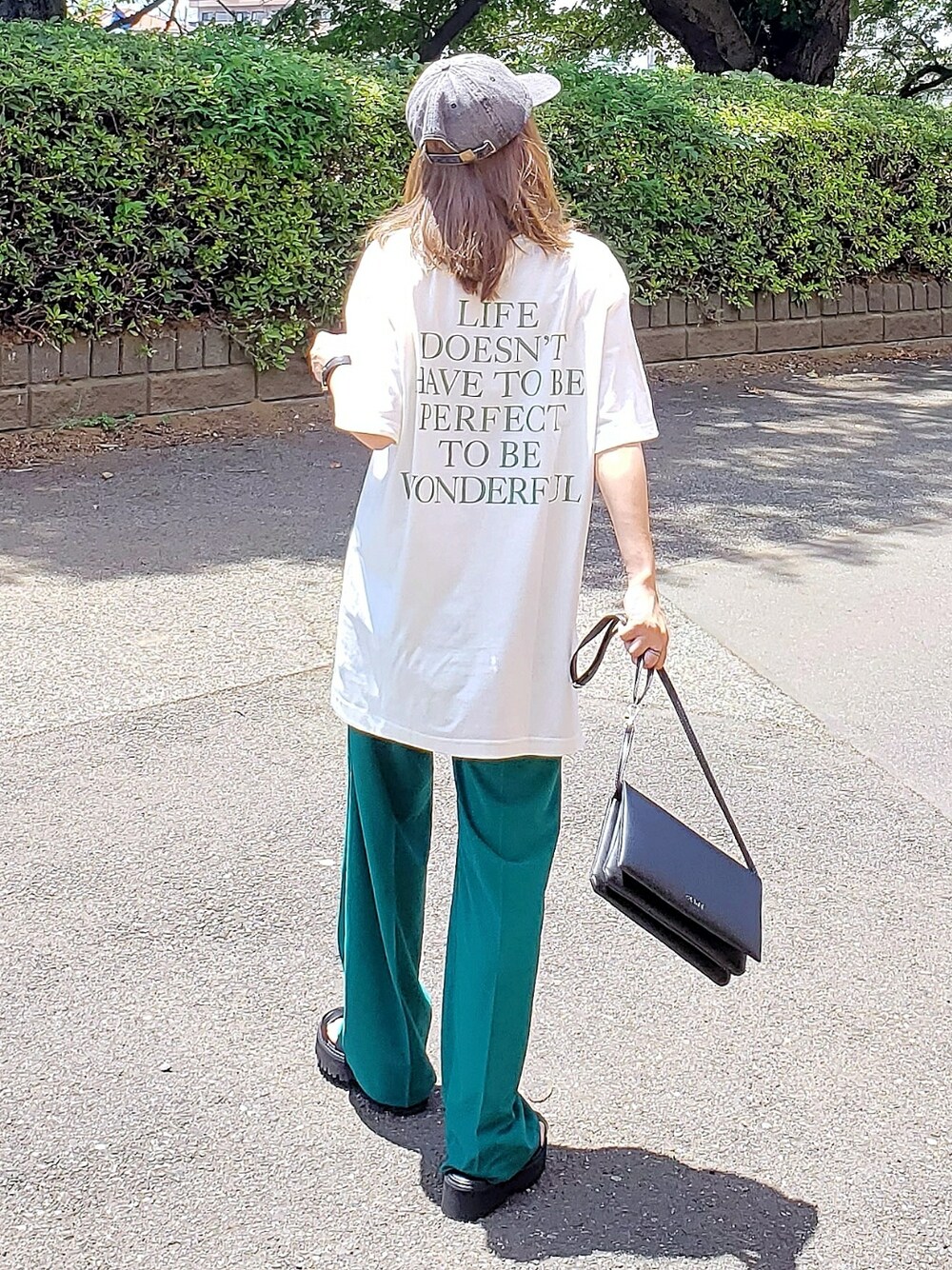 バックロゴTにカラーパンツ。 ロゴがグリーンでかわいいTシャツは、 【AS KNOW AS plus】のバックロゴT💚 インパクトある大きめロゴなんだけど、控えめな グリーンなので合わせやすくてちょうど良い😊 そして前にもワンポイントのロゴがあって理想的🙌 夏はオーバーサイズでゆるっとしてるこういう Tシャツがいちばん活躍するよね🎵 ちなみに他カラーもかわいくて、追加するか 悩み中です❣️ ☑️本日クーポン出てるのでチェックしてみてね😃 Instagram⏩⏩@and_rich_