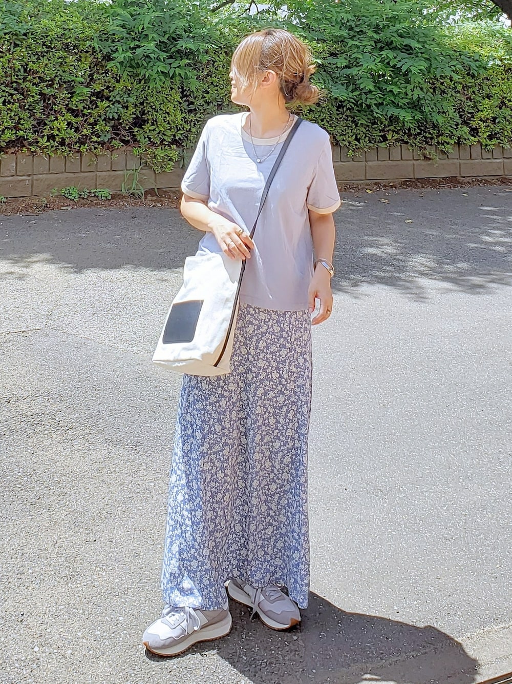 ブルーコーデ💙 リンガーT × 花柄スカート。 スカートはゆるっと履けるマーメイドスカート🧜♀️ 花柄はカジュアルに着たいのでスニーカーを 合わせました~👟✨ Instagram⏩⏩@and_rich_