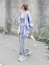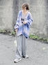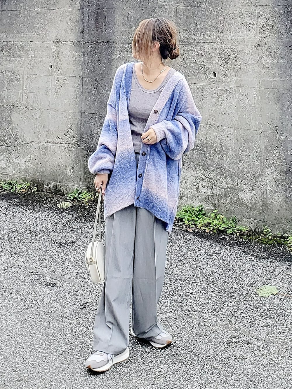 上下グレーにグラデーションニットカーディガンを。 【fredy emue】のカーディガンはブルー系の グラデーションで、ピンクが入ってるから パープルっぽくも見えて大人っぽい😊 Vネックのオーバーサイズなので、ルーズ感が 楽しめます~🎵 Instagram⏩⏩@and_rich_