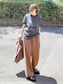 ブラウンのトラックパンツが かわいくてお気に入り🌟 ダークカラーでまとめて少し秋っぽく🍂 手持ちのTシャツと合わせやすいし 楽チンな着心地が嬉しい♪ Instagram⏩⏩@and_rich_