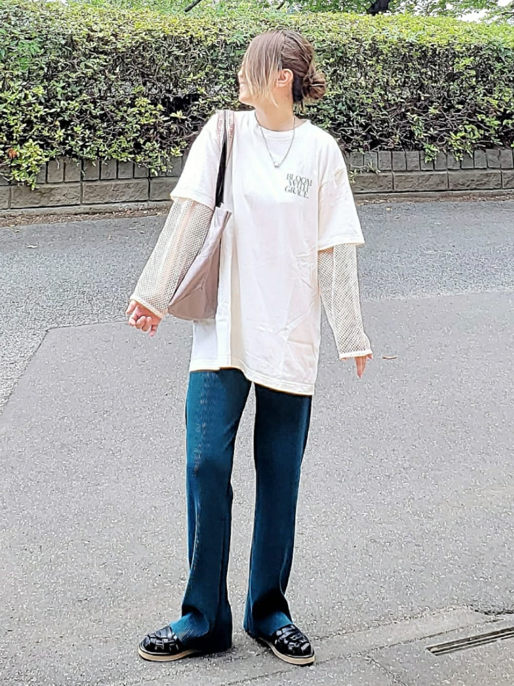 半袖Tにメッシュをレイヤード ちょっぴり秋コーデ🍂 メッシュニットは2WAYで リボンが付いてるカーディガンだけど 特に膨らむこともなく着られた~😊 Instagram⏩⏩@and_rich_