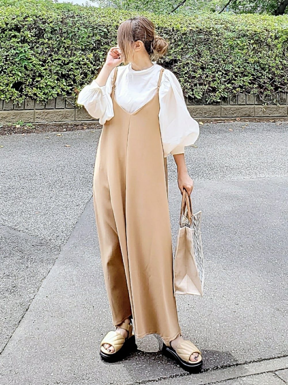 キャミワンピコーデ🤗 ボリューム袖のブラウス合わせて 大人かわいい雰囲気に♡ Instagram⏩⏩@and_rich_