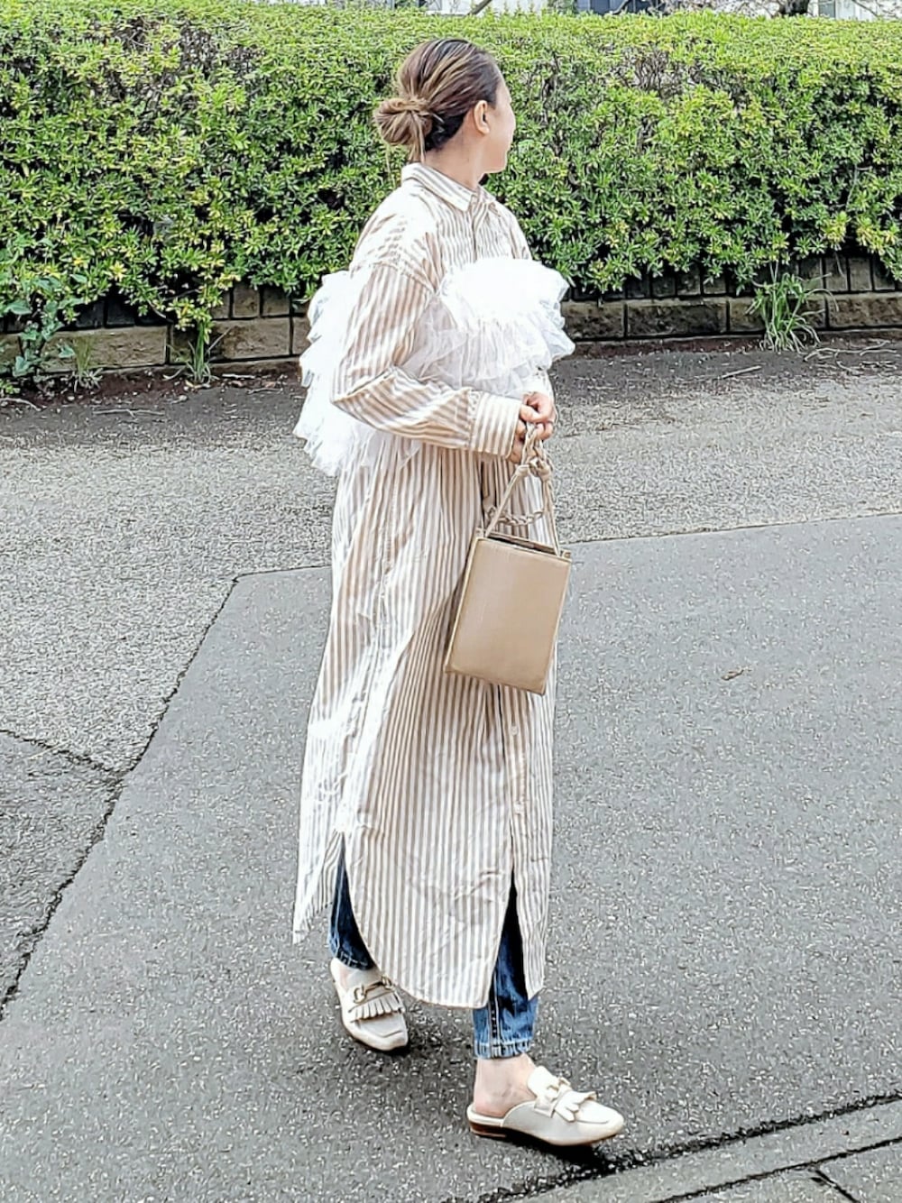 ストライプシャツワンピに フリルビスチェをプラス♡ 毎年着ているシンプルなワンピも チュールフリルでかわいさアップ🙌 Instagram⏩⏩@and_rich_