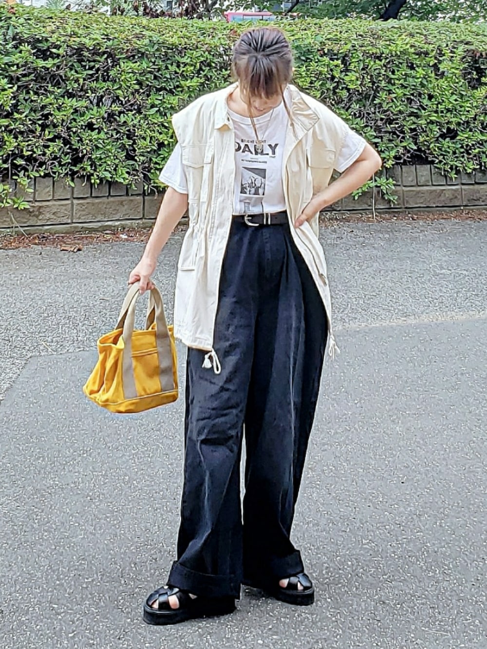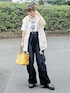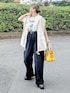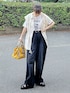 &りっちのデニムパンツ「硫化染め ブラスト加工 カツラギ ヴィンテージライク バギーパンツ」を使ったコーディネート