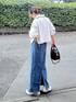 ナイロンのトラックジャケットに ロングデニムスカート💙 トラックジャケットやスニーカーで カジュアル強めだけど ロングスカートで大人っぽく🙋 Instagram⏩⏩@and_rich_