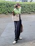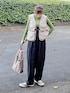 リブニット×フィッシングベストで 秋のレイヤード🍂 カラーニット入れるとかわいいな♡ カーブパンツでゆるっとラフに♪ Instagram⏩⏩@and_rich_