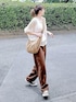 UNIQLOのこのパンツが好きすぎる🥰 ドライスウェットで夏でも履きやすいし カーブパンツでトレンド感も☺️ やっぱり今季はブラウンかわいいな♡ Instagram⏩⏩@and_rich_