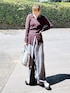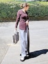 ダークブラウン×グレー 大人っぽくて好きな色合わせ♡ シアートップスは大好きな 6〈ROKU〉で 最近購入したもの✨ コンパクトなサイズ感のシャツで 羽織りにもなるから秋に良さそう Instagram⏩⏩@and_rich_