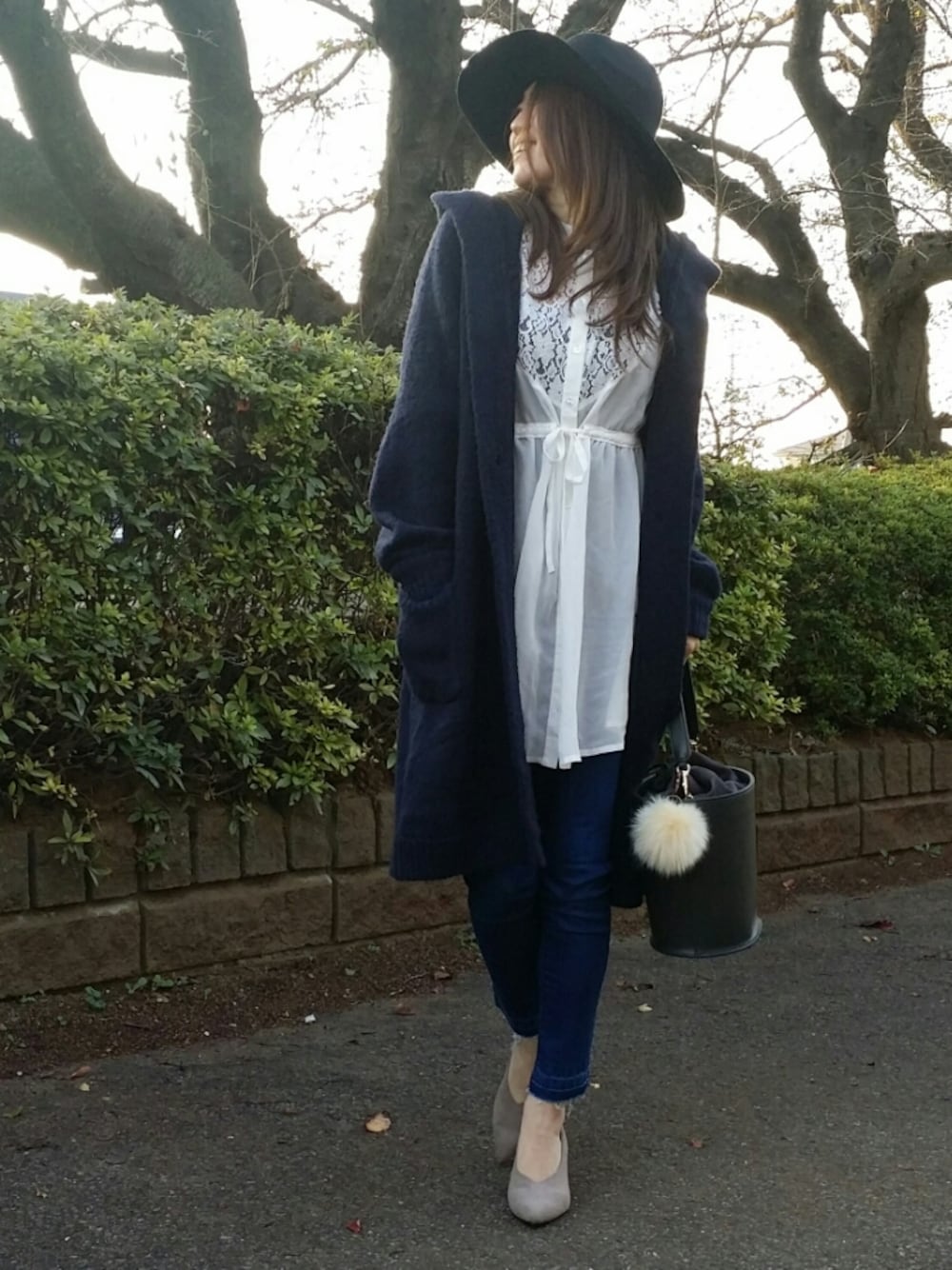 GUのカーディガンは去年のもので我慢ww くらーいネイビーコーデ(*´ω`*)